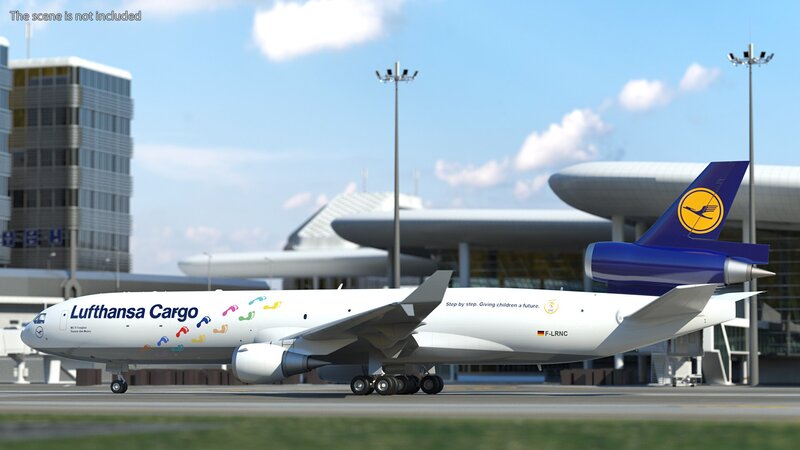 McDonnell Douglas MD11 Tri Jet Airliner Lufthansa Cargo 3d model is ready to be animated. You can easily position it the way you need or animate it the way your project requires using helpers in 3D Studio Max.